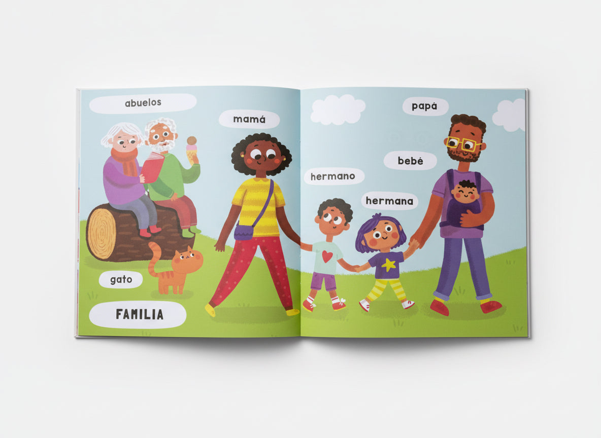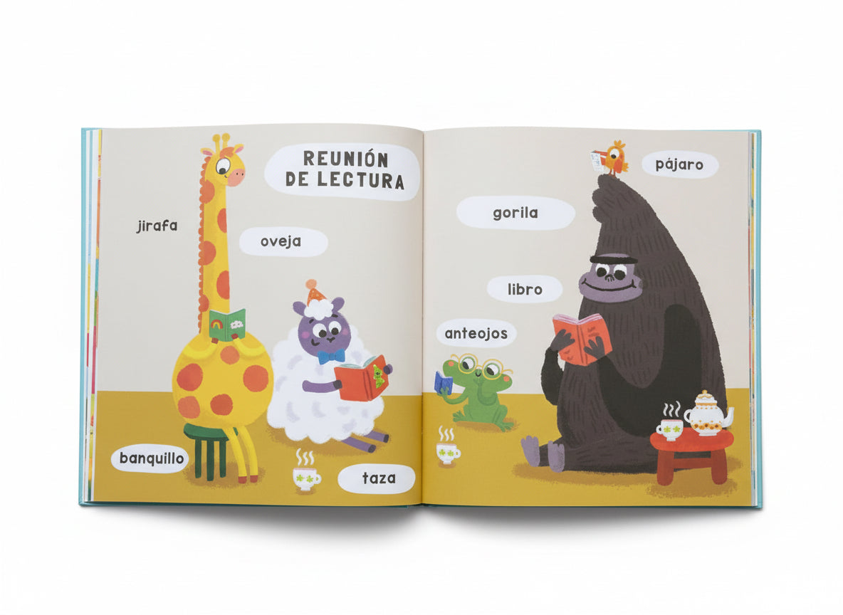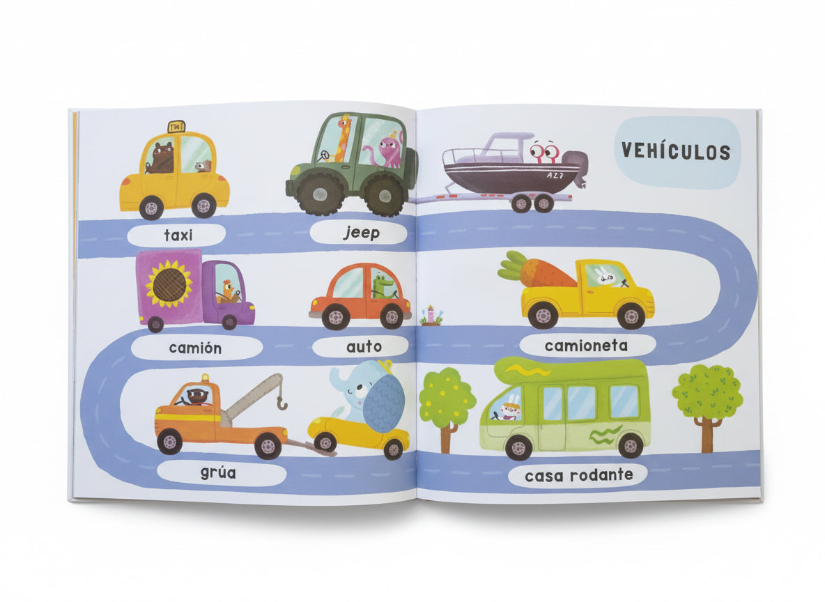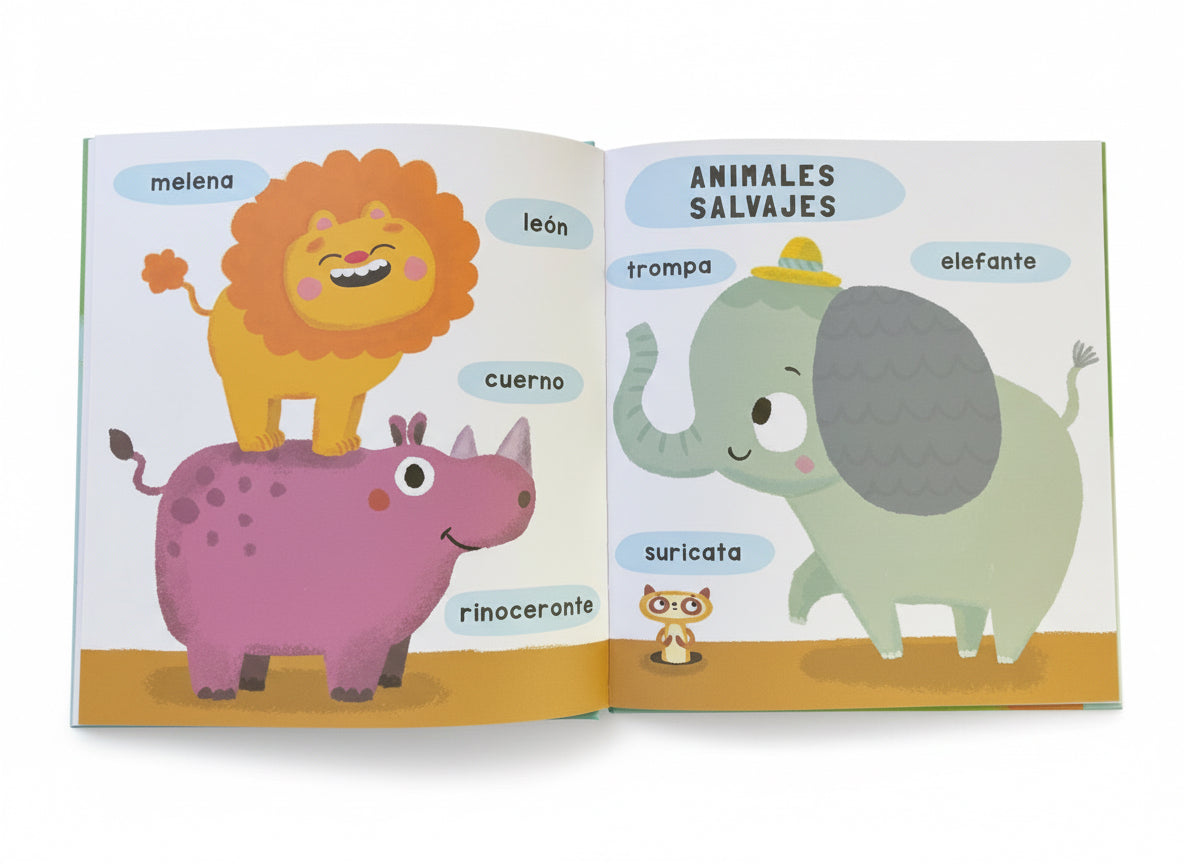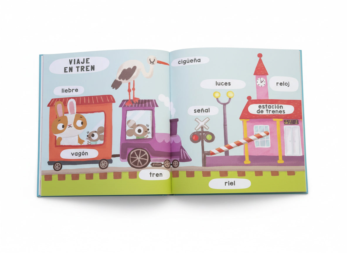 Cada entrada combina términos cotidianos seleccionados para las etapas iniciales del habla con ilustraciones claras y colores contrastantes, lo que favorece la atención y la retención. El diseño promueve sesiones breves y repetitivas que transforman el aprendizaje en encuentros lúdicos entre el adulto y el niño, reforzando la interacción y el vínculo comunicativo.