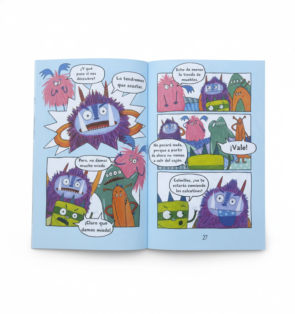 Cuando la noche cae y todo parece más grande, incluso las pequeñas señales pueden convertirse en una gran aventura: Billy intenta mantenerse despierto para que el miedo a la oscuridad no lo venza, pero una vocecita chillona, diminutas huellas púrpuras y un sándwich a medio devorar lo empujan a investigar. En Los monstruos de la oscuridad. Libro 1 se combina misterio y ternura para mostrar cómo la curiosidad y la risa pueden transformar los temores infantiles en descubrimientos emocionantes.