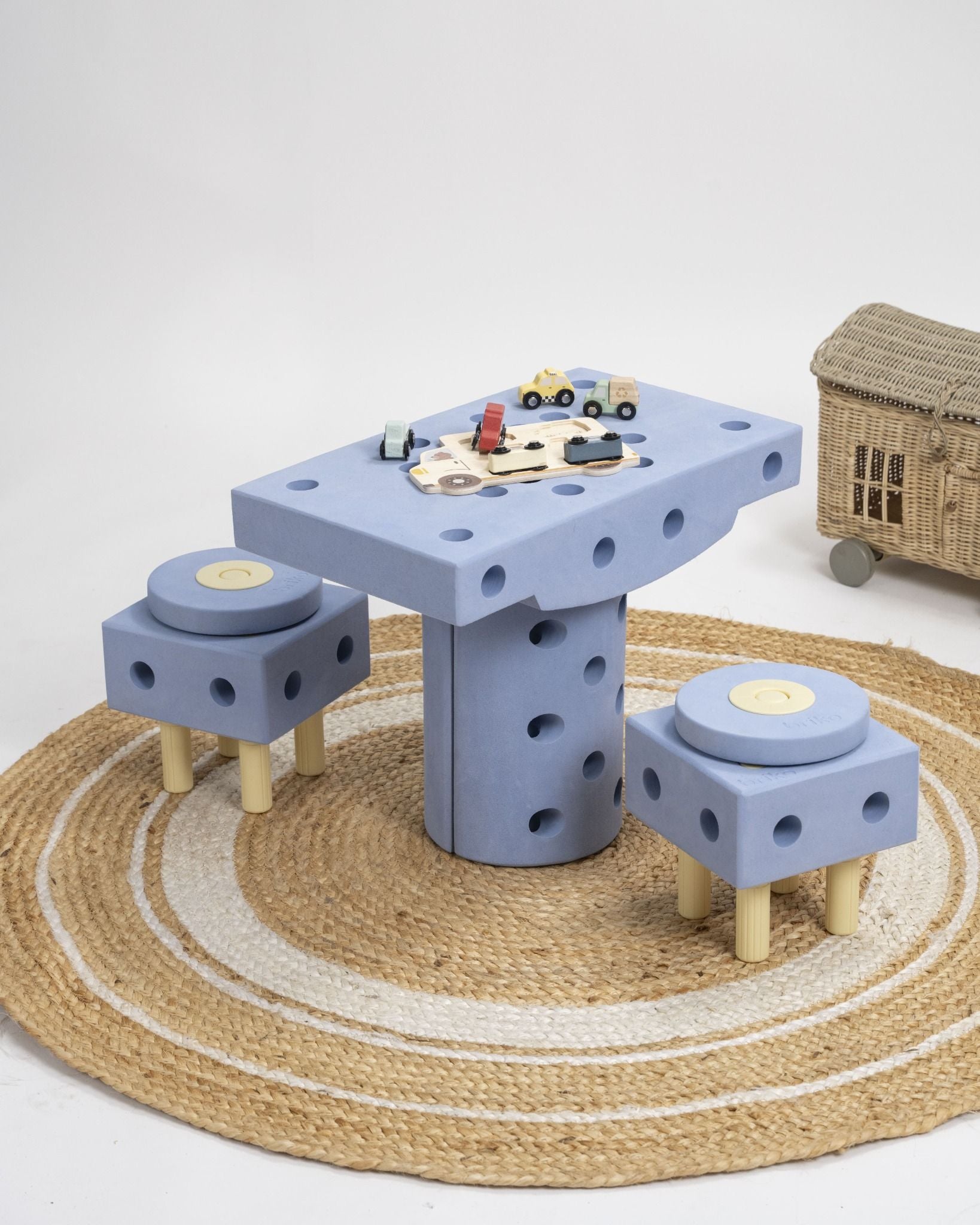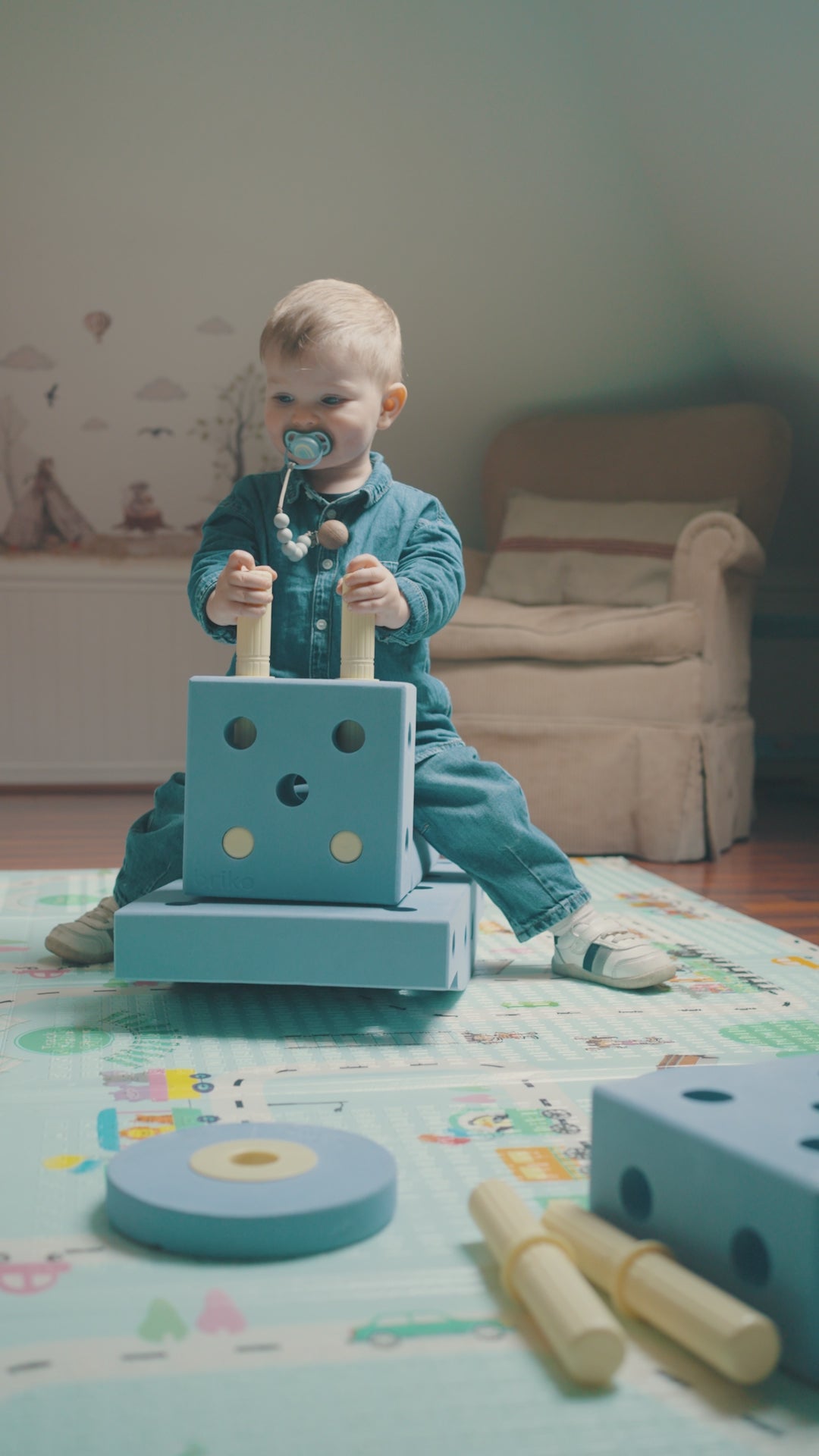 Creado para acompañar la curiosidad y el movimiento natural de los niños. Sus piezas grandes y ligeras invitan a construir, trepar, apilar y descubrir infinitas formas de jugar, siempre con total seguridad.