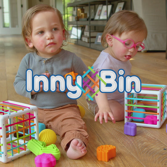 InnyBin es un innovador cubo de clasificación de formas, las 6 figuras están diseñadas con texturas únicas y diferentes formas para ser introducidas a través de las bandas elásticas de llamativos colores. Dentro de sus figuras hay un diamante, un cubo, una esfera, un triángulo, una flor y el feliz logotipo de Fat Brain .