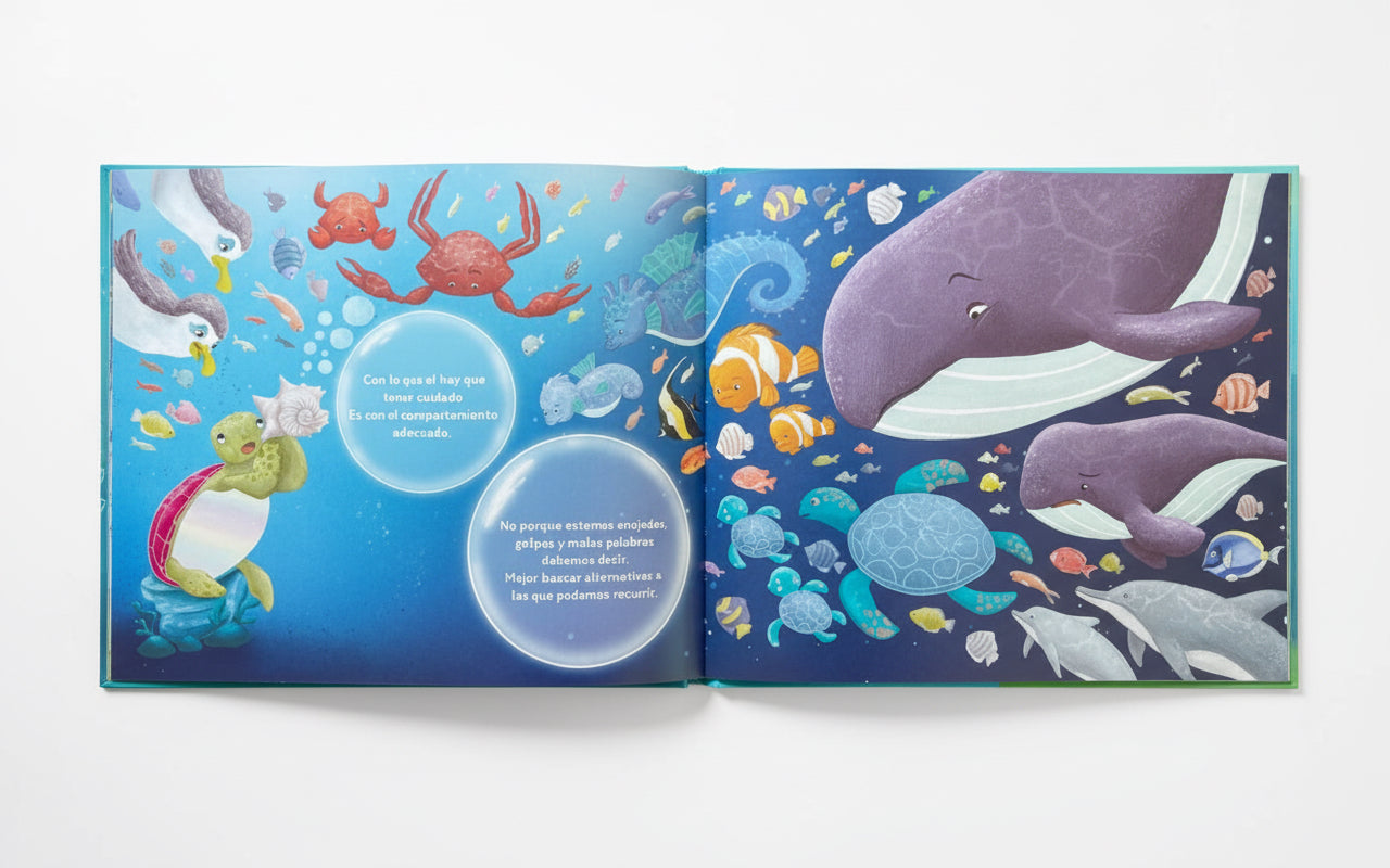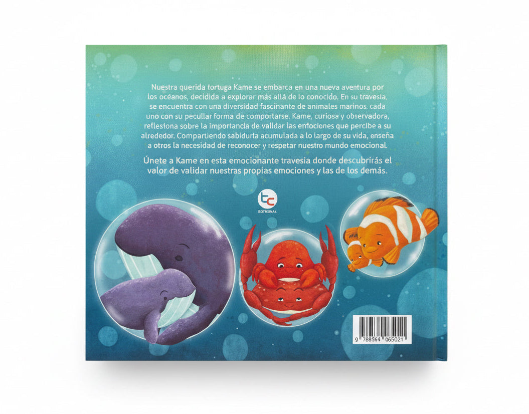 Nuestra querida tortuga Kame se embarca en una nueva aventura por los océanos, decidida a explorar más allá de lo conocido. En su travesía, se encuentra con una diversidad fascinante de animales marinos, cada uno con su peculiar forma de comportarse. Kame, curiosa y observadora, reflexiona sobre la importancia de validar las emociones que percibe a su alrededor. Compartiendo sabiduría acumulada a lo largo de su vida, enseña a otros la necesidad de reconocer y respetar nuestro mundo emocional.