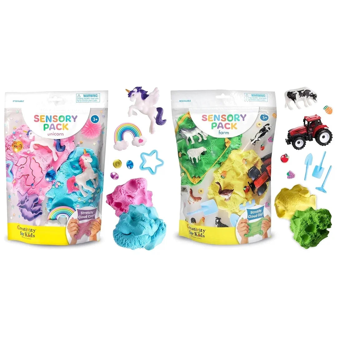 Embárcate en aventuras sensoriales con los Paquetes de Desarrollo Sensorial de Creativity for Kids. El Pack Sensorial Unicornio te sumerge en un mundo mágico donde la creatividad y la diversión se unen. Experimenta sensaciones a través de texturas y colores mientras creas escenas inmersivas con la arcilla de nubes suave y elástica. Por otro lado, el Pack Sensorial Granja te lleva al campo con tractores y animales, desatando la imaginación de los más pequeños. Descubre colores vibrantes, figuras divertidas y herramientas que estimulan el juego creativo. ¡Invita a tus hijos a explorar y crear con estos packs seguros y cuidadosamente seleccionados!