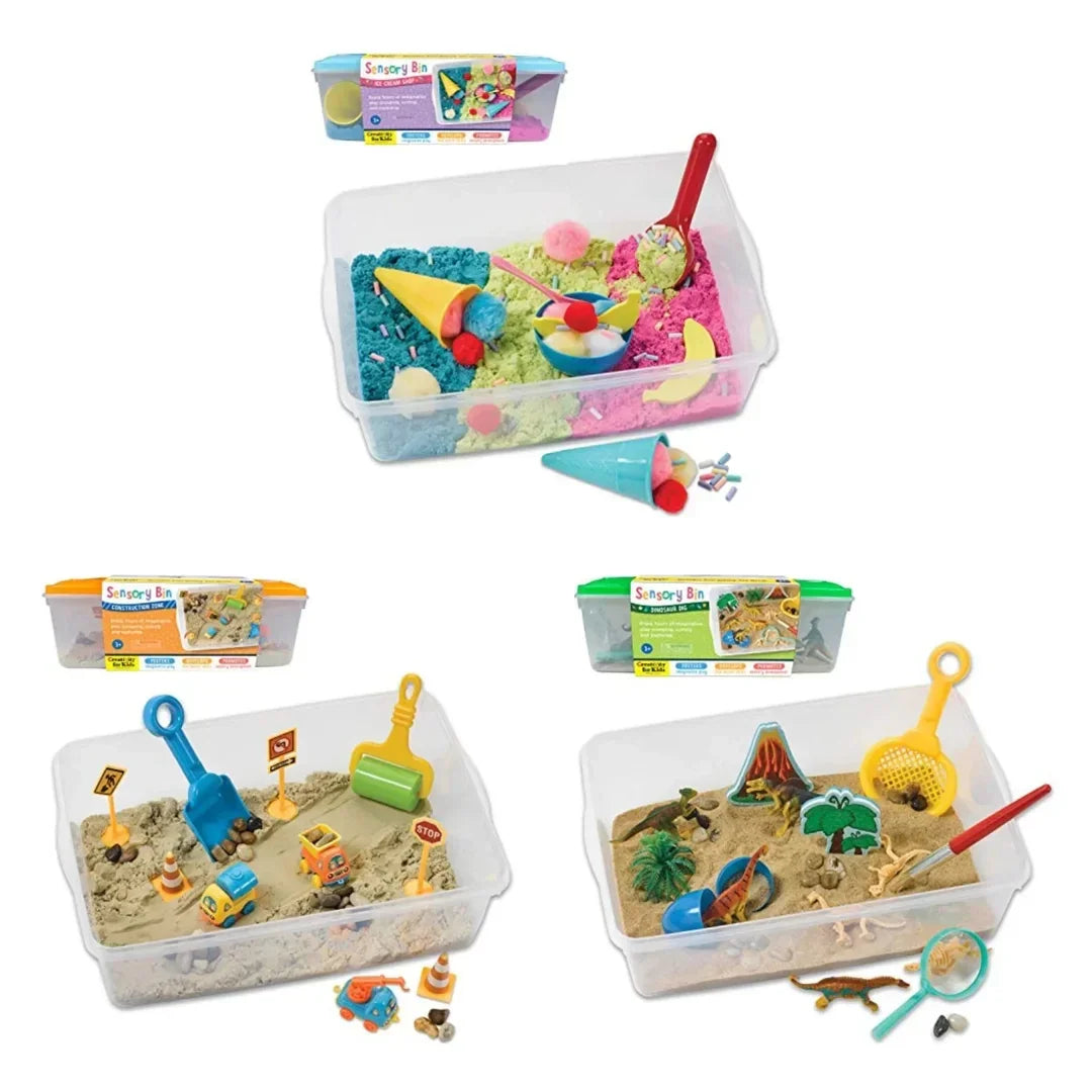 La Caja Sensorial - Tienda de Helados, la Caja Sensorial - Zona de Construcción y la Caja Sensorial - Dinosaurios ofrecen experiencias educativas y entretenidas que transportan a los niños a mundos divertidos y creativos. Estimulan habilidades cognitivas como el conteo, la identificación de colores y la creatividad, ideal para el desarrollo integral de los más pequeños. Cada caja incluye 1 kilo de arena sensorial y una variedad de accesorios temáticos que fomentan la exploración táctil y el aprendizaje activo. Regala estas experiencias sensoriales a los niños pequeños que disfrutan de la diversión y el aprendizaje interactivo.