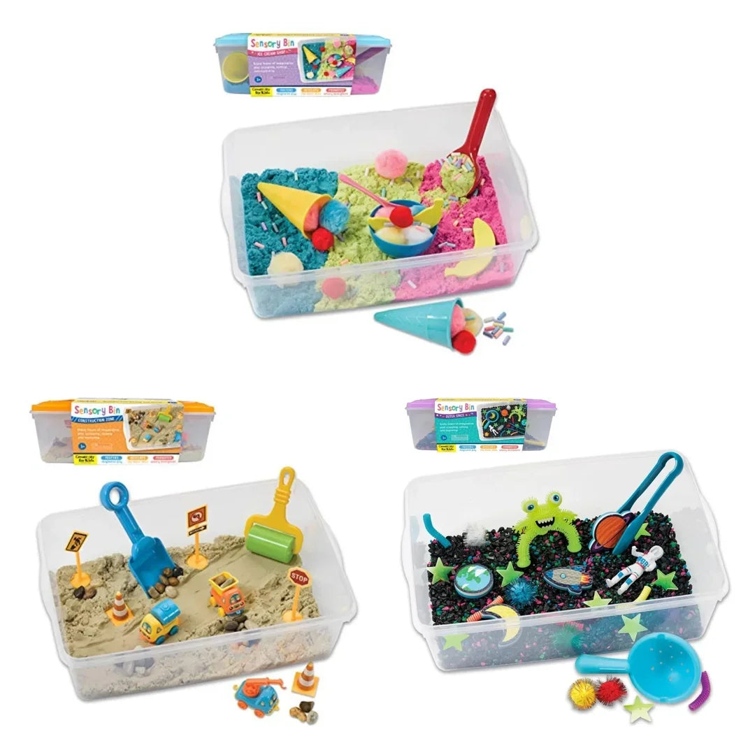 Descubre la magia de la exploración sensorial con este increíble paquete de Cajas Sensoriales. Desde una heladería hasta una zona de construcción y hasta el espacio exterior, cada caja ofrece una experiencia educativa y entretenida que estimula habilidades cognitivas y la creatividad en los niños pequeños. Con ingredientes como arena sensorial, pompones, camiones, rocas espaciales y más, fomenta la exploración táctil y el aprendizaje activo. Ideal para niños a partir de 3 años (supervisados), estas cajas son perfectas para regalarles diversión y aprendizaje en un solo producto. ¡No te pierdas esta increíble oportunidad de juego creativo!