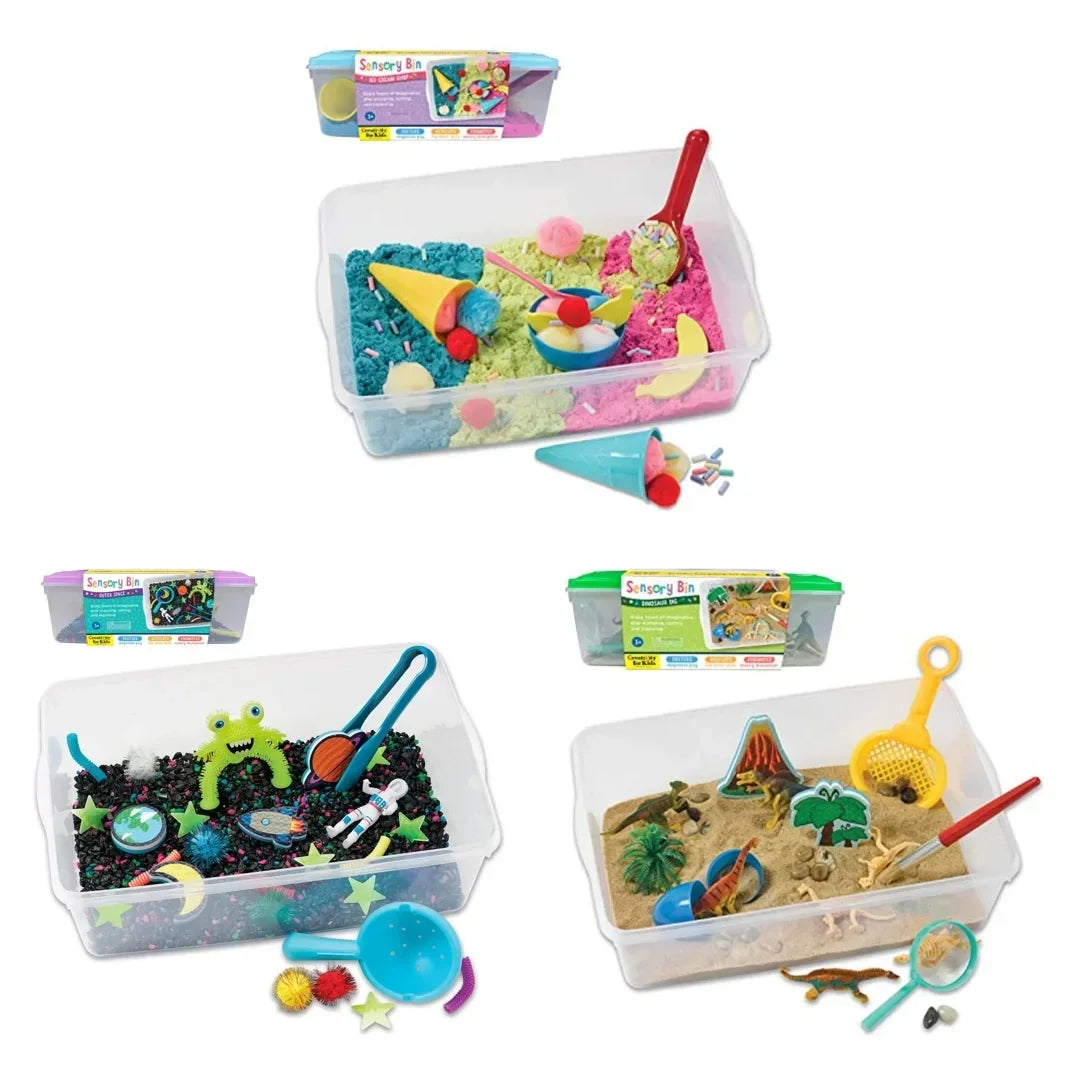 Explora mundos fascinantes con nuestra colección de Cajas Sensoriales. La Caja Sensorial Tienda de Helados transporta a los niños a una heladería, estimulando sus habilidades cognitivas y creativas. La Caja Sensorial Espacio Exterior los lleva a una misión intergaláctica con rocas espaciales y figuras de astronauta. Y la Caja Sensorial Dinosaurios los sumerge en la era prehistórica con arena de juego y figuras de dinosaurios. Ideal para niños de 3 años en adelante, estas cajas ofrecen experiencias educativas y entretenidas que fomentan la exploración táctil y el aprendizaje activo. ¡Regala diversión y aprendizaje en una sola caja!