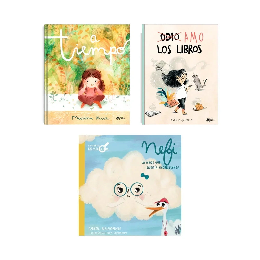 Descubre un mundo de reflexión, imaginación y perseverancia con este fascinante paquete que incluye "A tiempo", una cautivadora historia sobre disfrutar el presente; "Amo los libros", una aventura que fomenta la lectura y la imaginación; y "Nefi, la nube que quería hacer llover", un relato inspirador sobre esfuerzo y perseverancia. Estos libros, llenos de mensajes reflexivos y conmovedores, son perfectos para lectores de 4+ años que buscan inspiración en la simplicidad de la vida cotidiana y en el poder de la imaginación. Sumérgete en estas emocionantes historias y déjate llevar por sus encantadores mensajes.