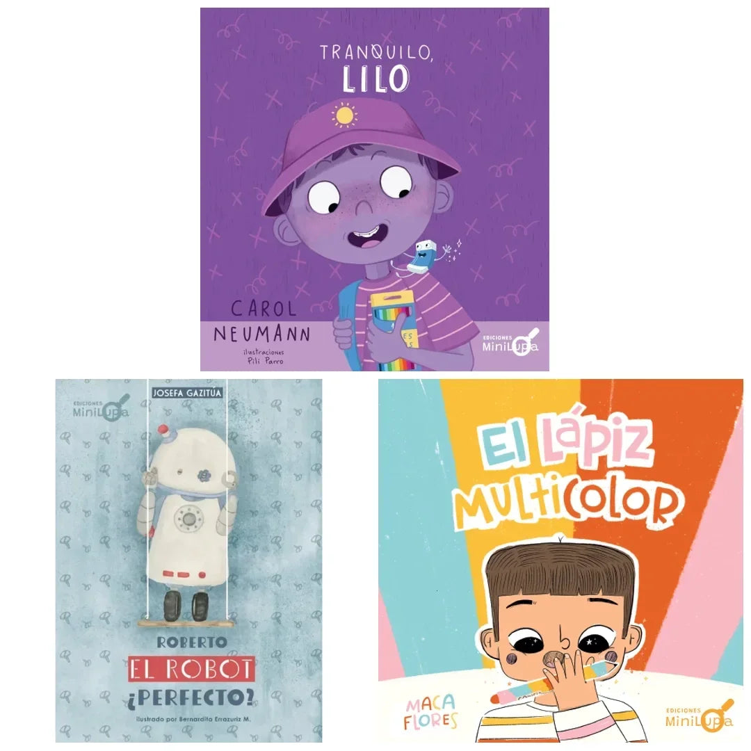Descubre un pack especial que incluye tres libros con historias encantadoras para fomentar valores importantes en los niños. "Tranquilo, Lilo" enseña sobre la tolerancia al error, "Roberto, el robot ¿perfecto?" aborda la autoexigencia y la gestión emocional, y "El lápiz multicolor" promueve la tolerancia a la frustración y la confianza. Estas emocionantes narrativas, ilustradas de forma cautivadora, son perfectas niños que requieren refuerzo para controlar y entender sus emociones. ¡Sumérgete en estas divertidas aventuras que dejarán una huella positiva en los pequeños lectores!