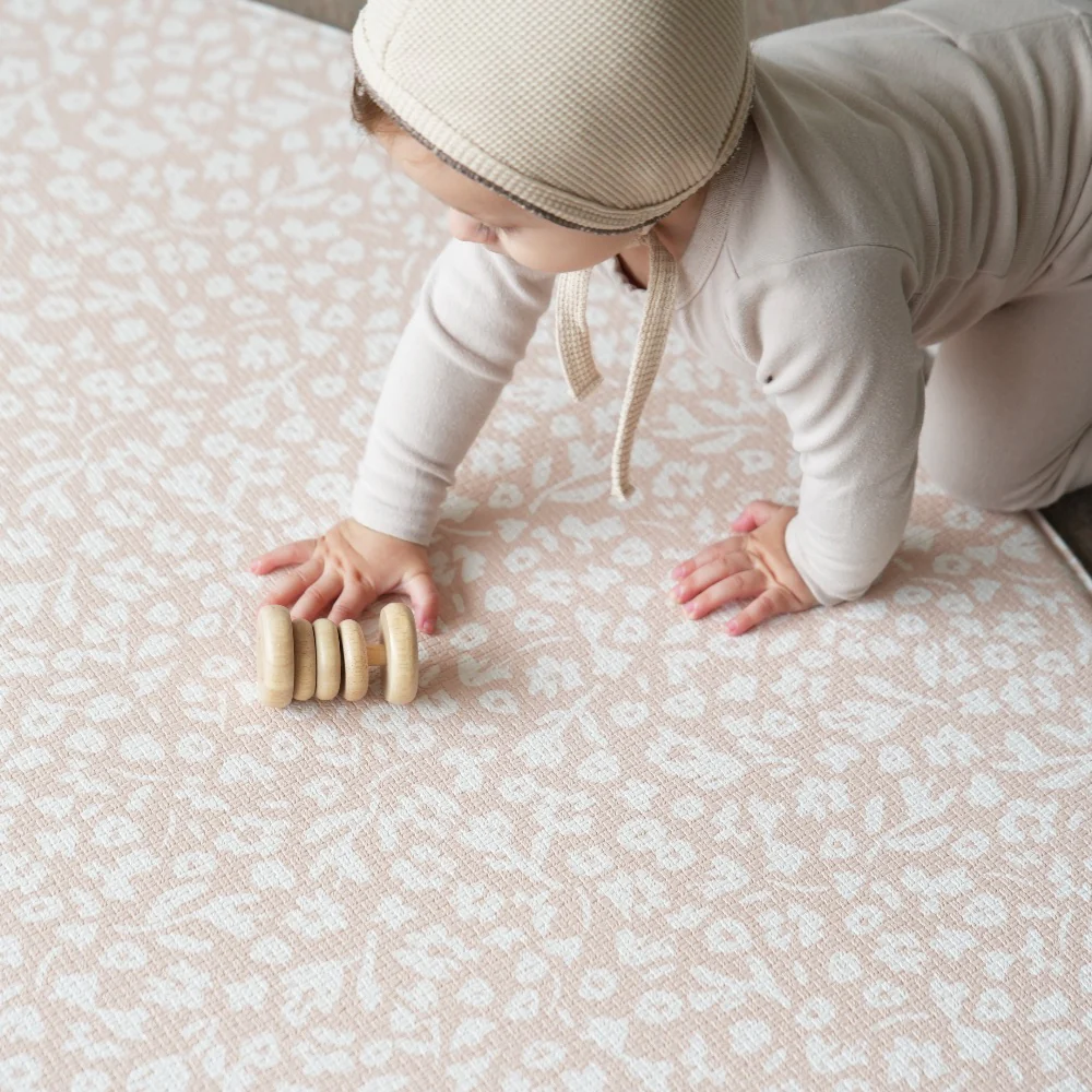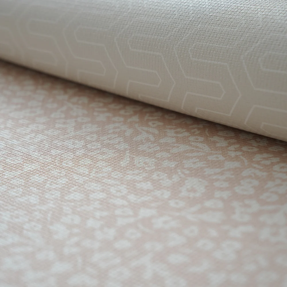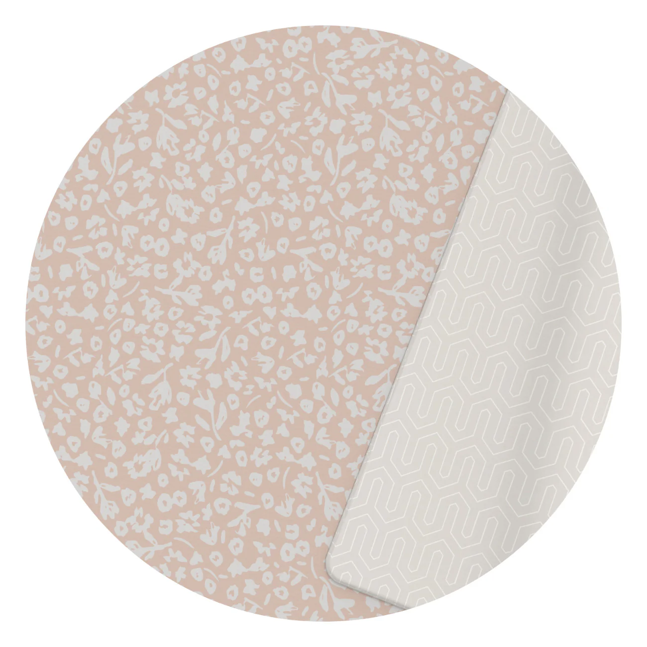 Lado A: Un diseño floreado en tonos rosa claro y blancos, siendo un playmat primaveral que agrega un tono fresco a los ambientes.
