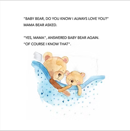 The mama bear, unconditionally, shows him that yes, she does and always will.